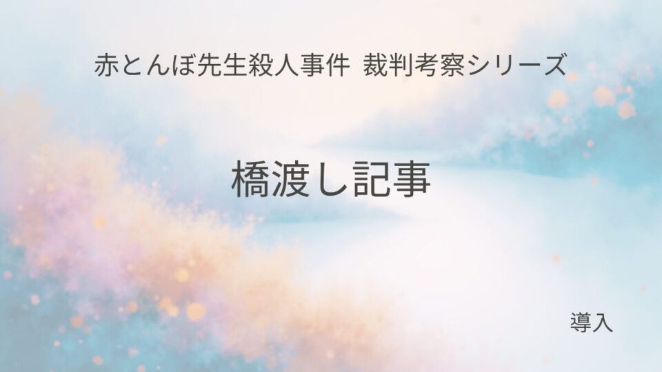 赤とんぼ先生殺人事件(裁判) 「赤とんぼ先生殺人事件」裁判考察を始めます 「赤とんぼ先生殺人事件」裁判考察の導入記事。判決の擁護でも否定でもなく、刑事裁判の制度がどう作用したかを、シリーズで整理します。次回は事件概要。 赤とんぼ先生殺人事件(裁判)
