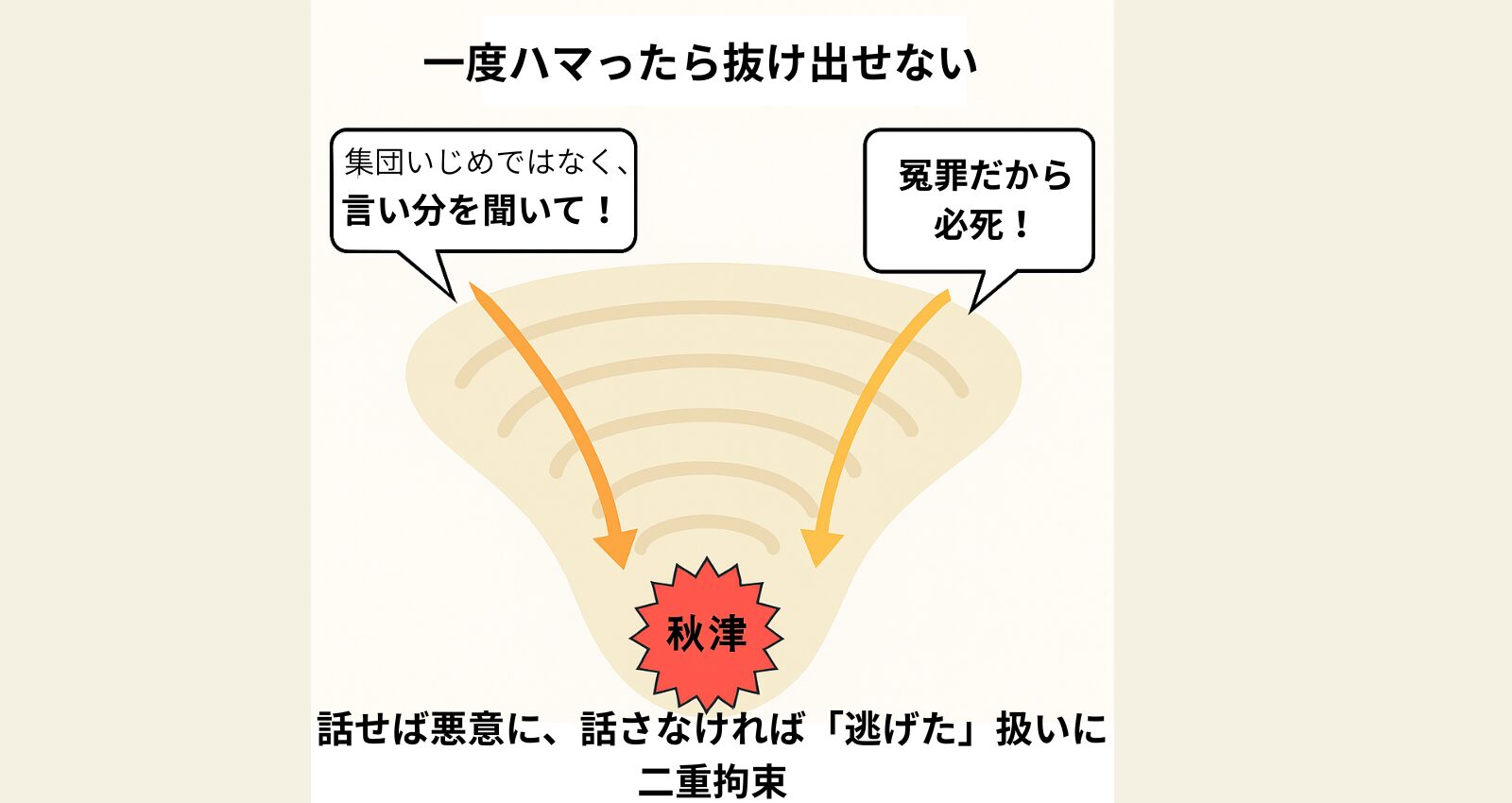 しかし、そこはすでに「秋津が悪い」という結論ありきの公開処刑の場でした。
