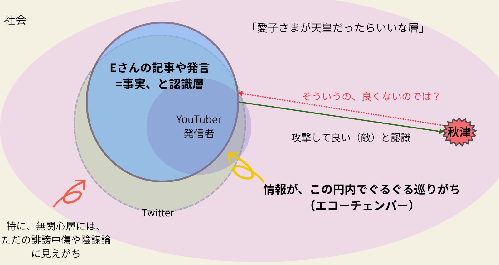 皇室問題でも同じで、有名発信者の記事や動画はそのまま事実とされ、異論は「敵」として排除されていますね。